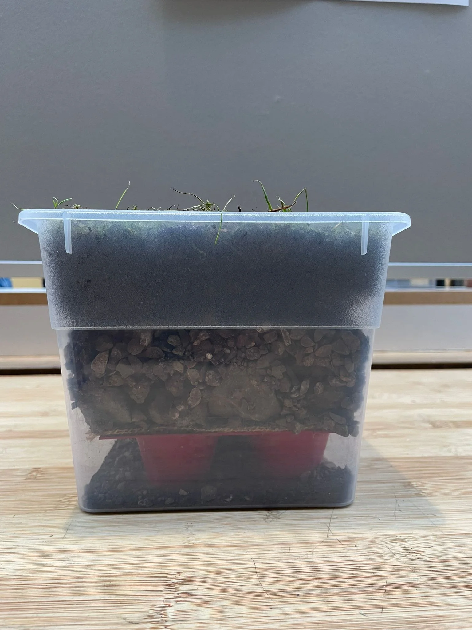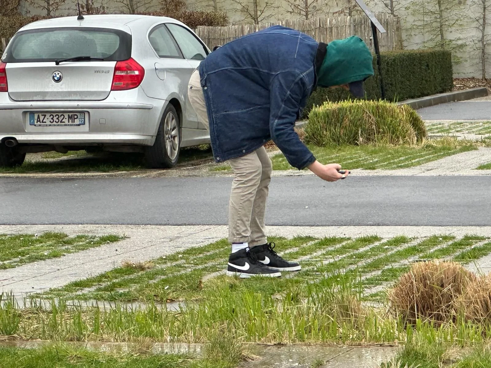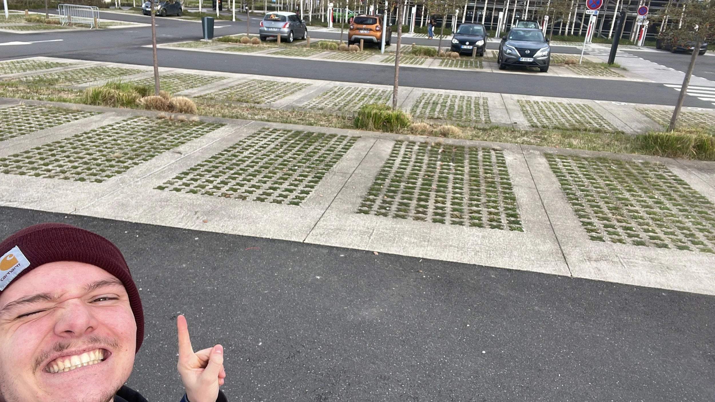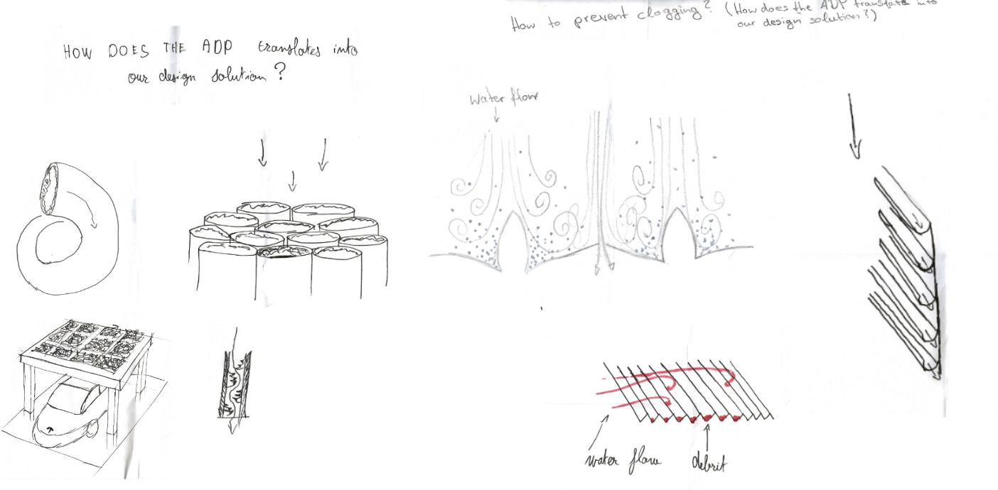 The gutter system, inspired by the basking shark’s gill structures, filters excess water before letting it infiltrate the ground. But the real focus is the experience: Instead of having grass directly at ground level like traditional permeable parking spots, the grill structure lifts the pressure off the plants, giving them extra room to grow below the surface. Cars rest on top of the grill, cutting only what grows through, while the rest of the vegetation develops freely underneath. This not only protects the plants but also supports soil health, biodiversity and micro-ecosystems at a lower level.
